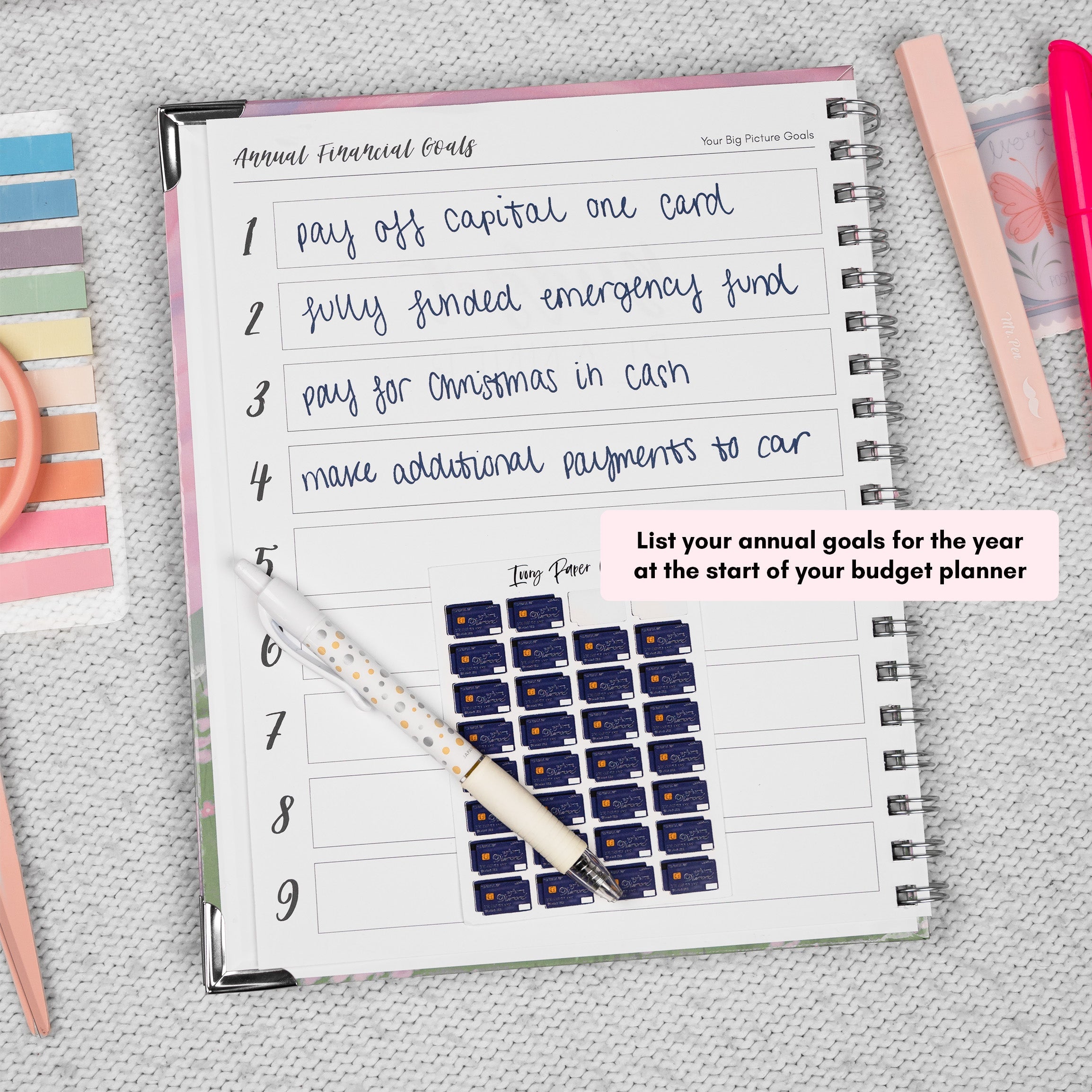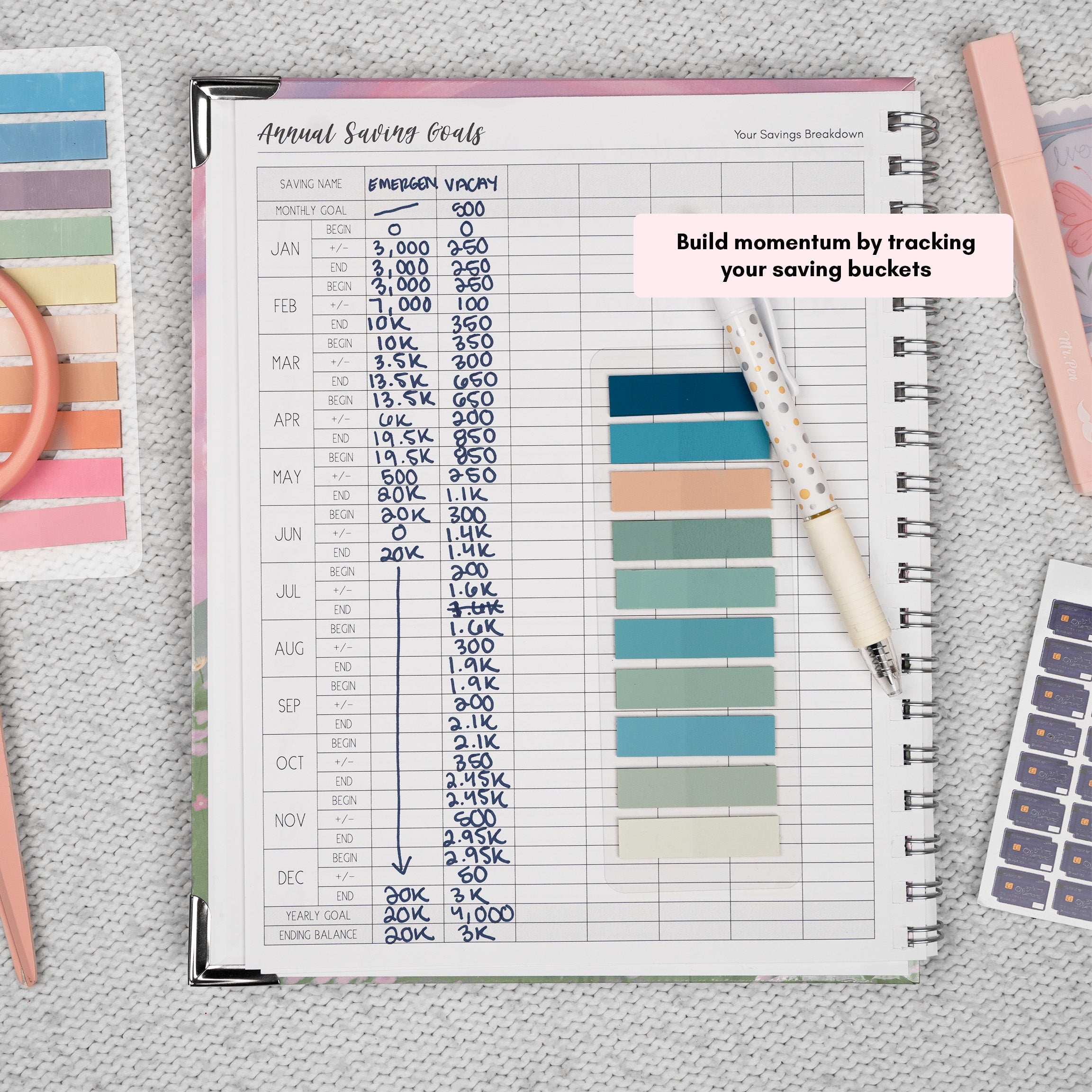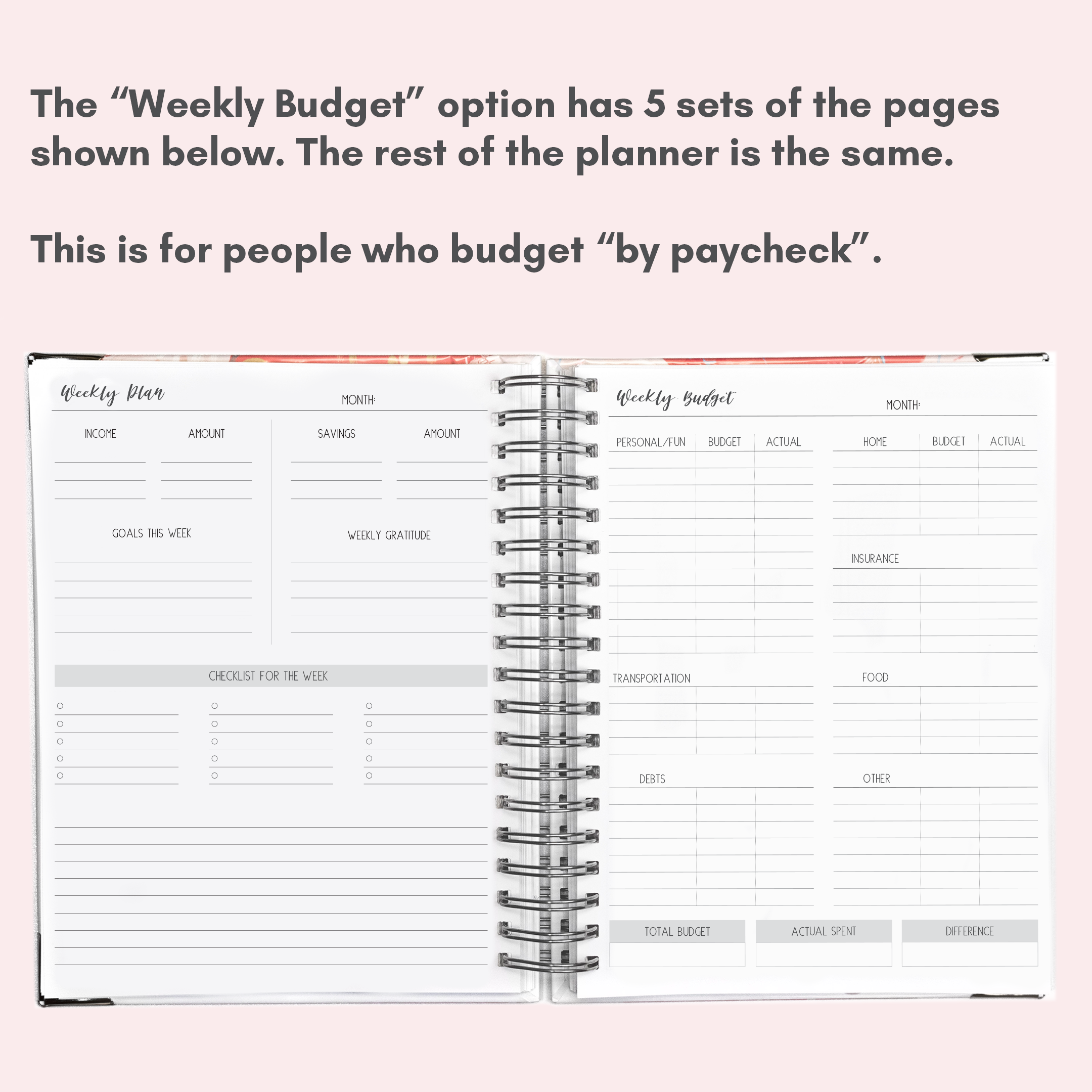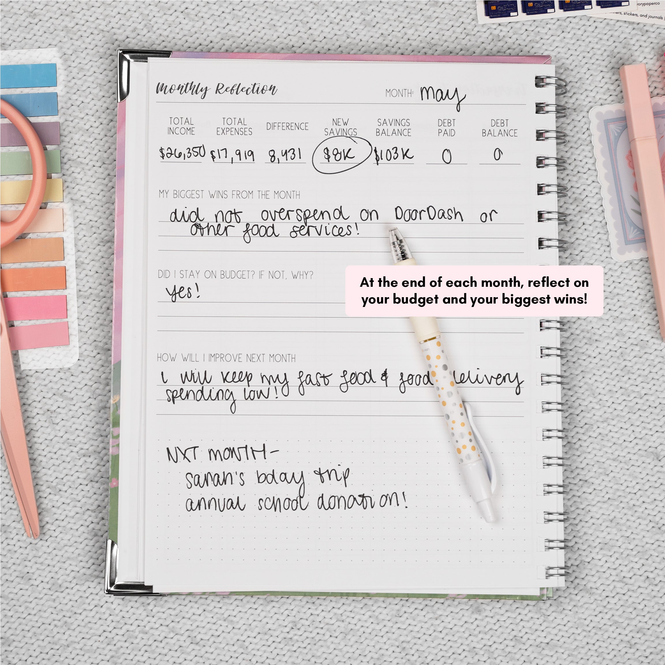 The Budget planner features 12-months of finance tracking and is non-dated to never waste a page.