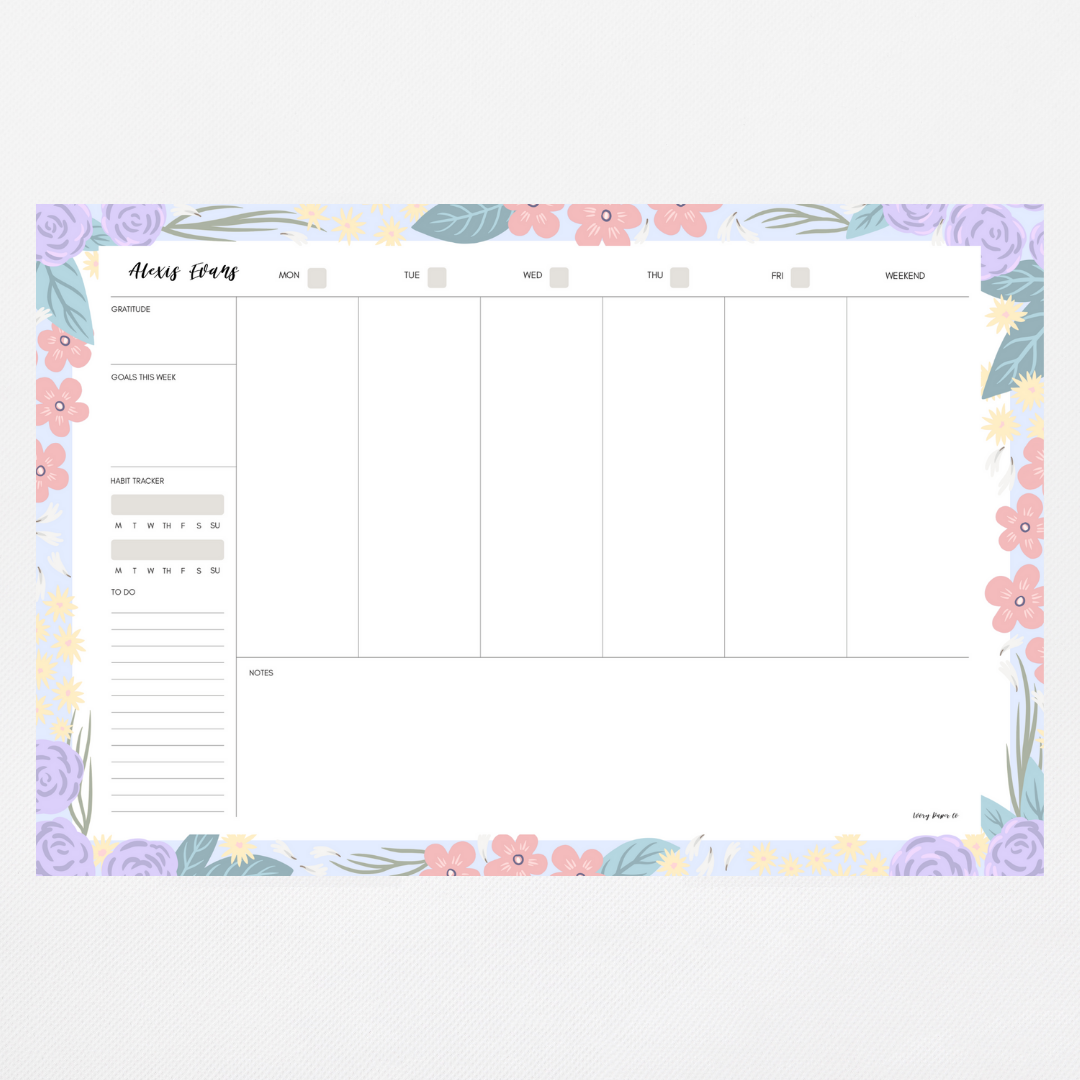 Large Deskpad Weekly Calendar - Flowerfield Blue