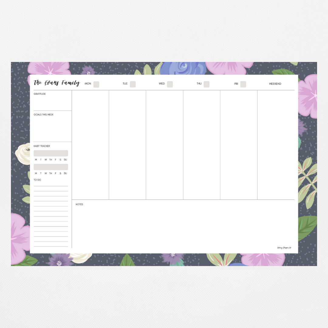 Customize the header from "The Stinson Family" to anything you'd like to make this deskpad work for you!