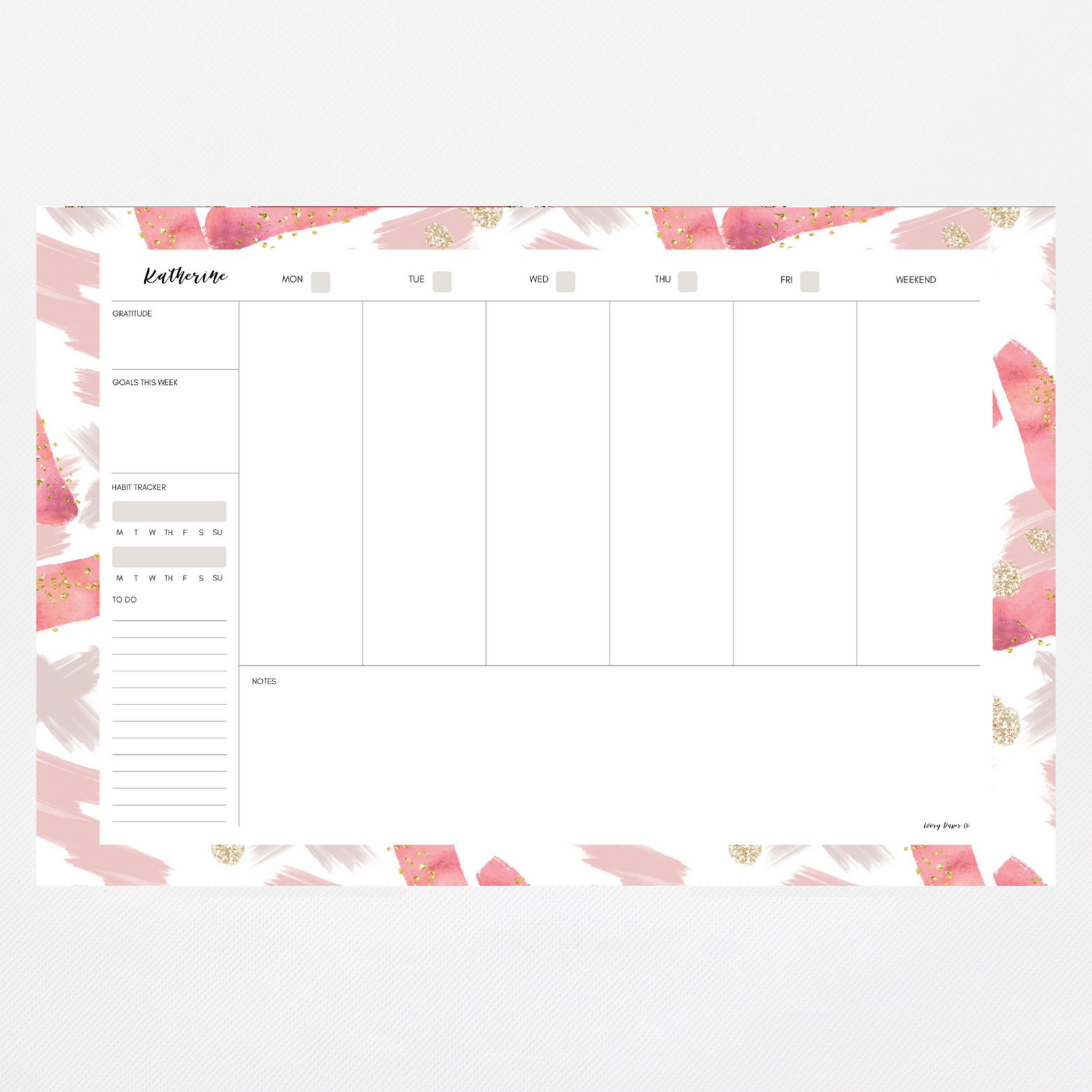Large Deskpad Weekly Calendar - Pink Paint Strokes