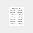 These stickers are printed on premium, glossy clear sticker paper! Everything is kiss-cut ready for you to use! These stickers are sized to fit perfectly in your Ivory Paper Planners.