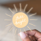 A clear sticker that is perfect for postive affirmations. The sticker is a reminder to shine bright! No matter how the day is going, no one can take away your shine!These stickers are printed on premium, waterproof vinyl that can easily be removed when needed! These stickers are sized to fit perfectly on your laptop, favorite water bottle, or wherever you see fit!
