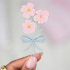 The clear Pink Flowers sticker features 3 beatiful florals perfectly tied with a blue ribbon! A cute sticker to add to your floral collection.These stickers are printed on premium, waterproof vinyl that can easily be removed when needed! These stickers are sized to fit perfectly on your laptop, favorite water bottle, or wherever you see fit!