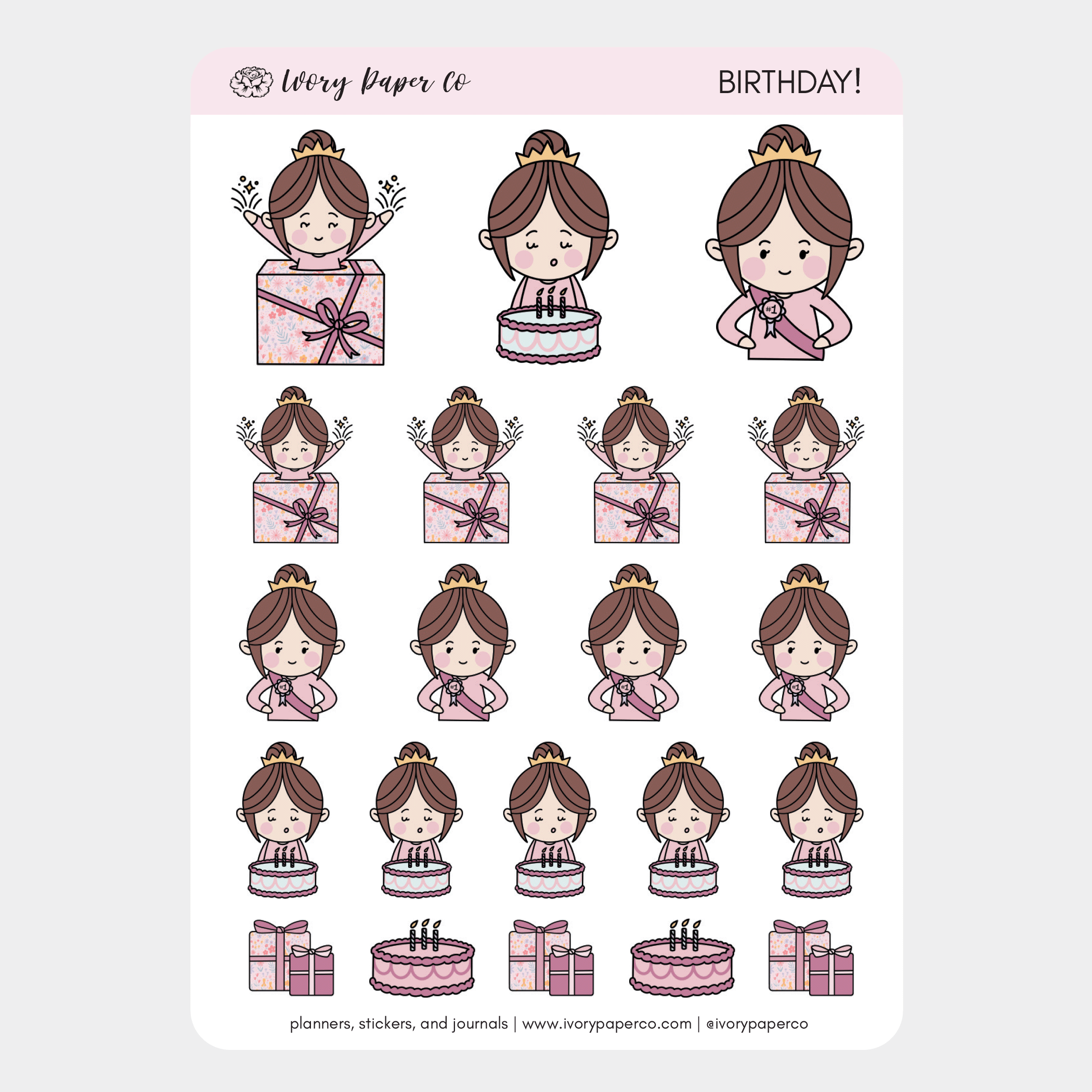 Birthday - Character Stickers - Ivory Girls