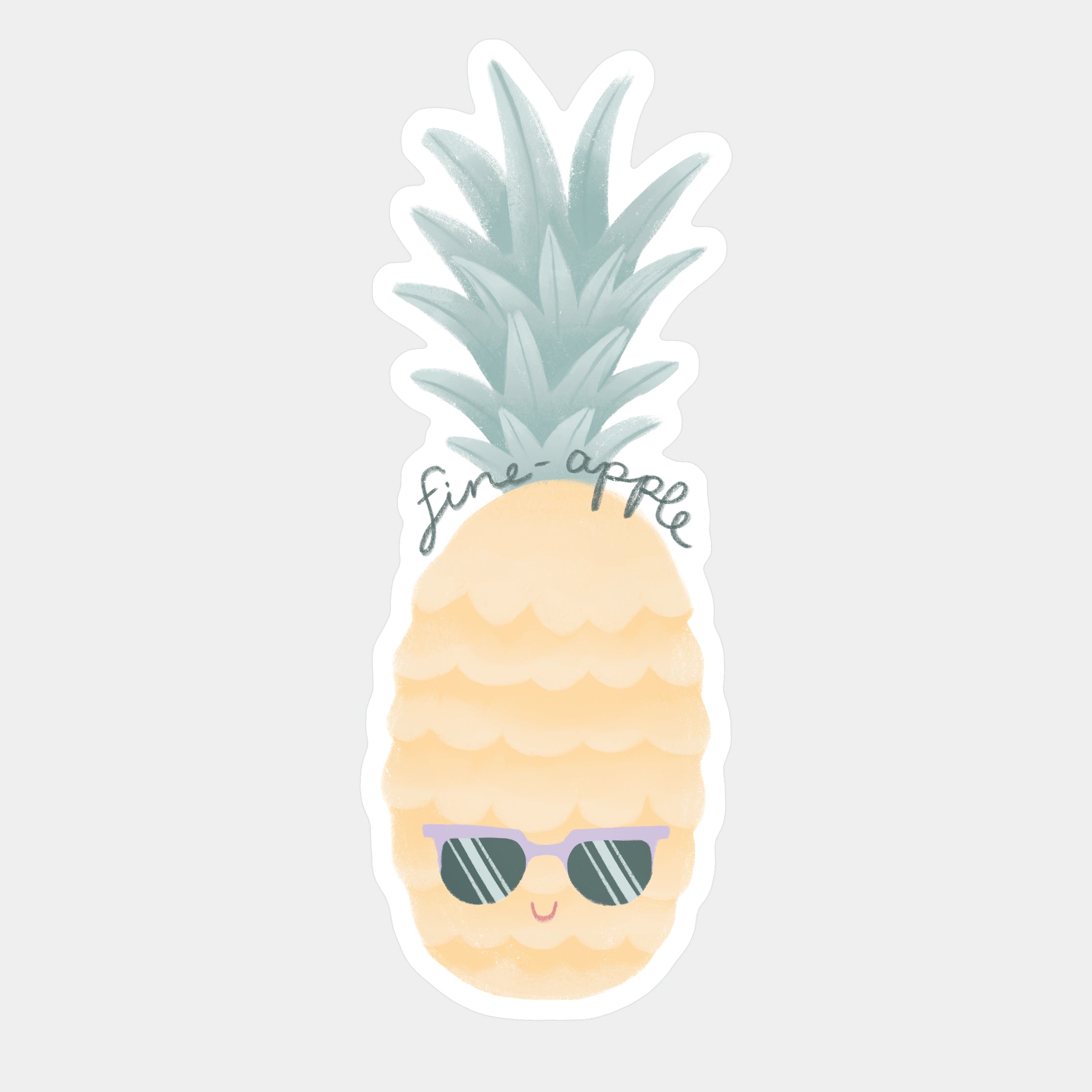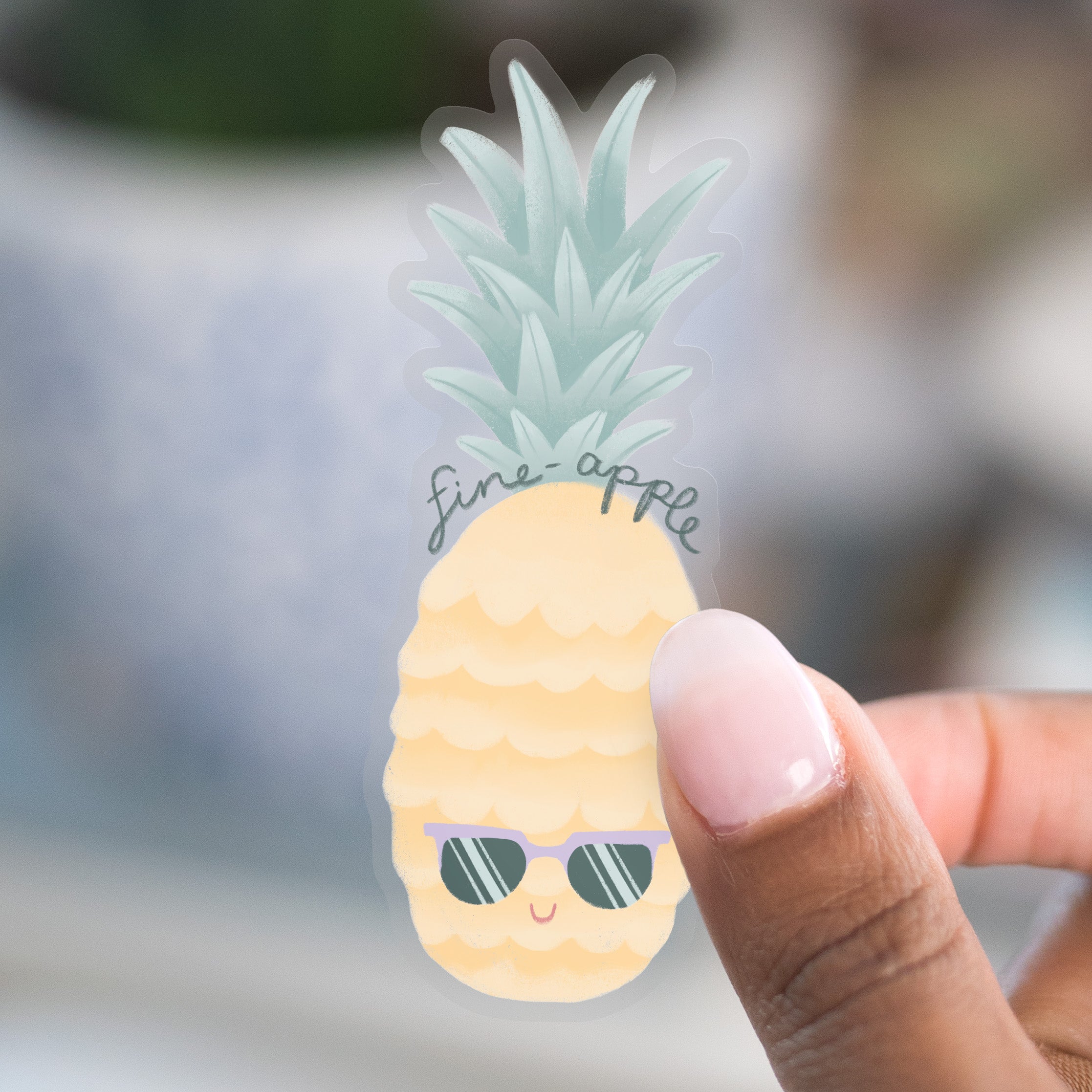 What is better than a pineappe? A "Fine-Apple"! This clear pineapple is super cute for a laptop and features a pineapple with a smiley face and shades to cool for the world!These stickers are printed on premium, waterproof vinyl that can easily be removed when needed! These stickers are sized to fit perfectly on your laptop, favorite water bottle, or wherever you see fit!