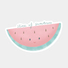A clear watermelon sticker with a bit of postivity! The sticker reads "Slice of Sweetness" and is perfect for your laptop or water bottle.These stickers are printed on premium, waterproof vinyl that can easily be removed when needed! These stickers are sized to fit perfectly on your laptop, favorite water bottle, or wherever you see fit!