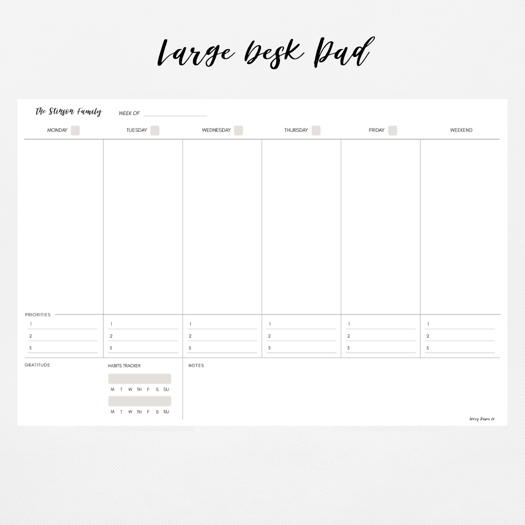 Customize the header from "The Stinson Family" to anything you'd like to make this deskpad work for you!