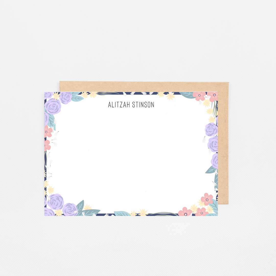 Personalized Stationery Notecards | Flower Field Navy Set